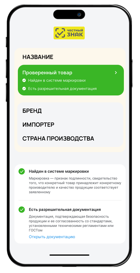 Покупая продукцию с маркировкой «Честный ЗНАК», вы защищаете себя от подделок и поддерживаете честный рынок.