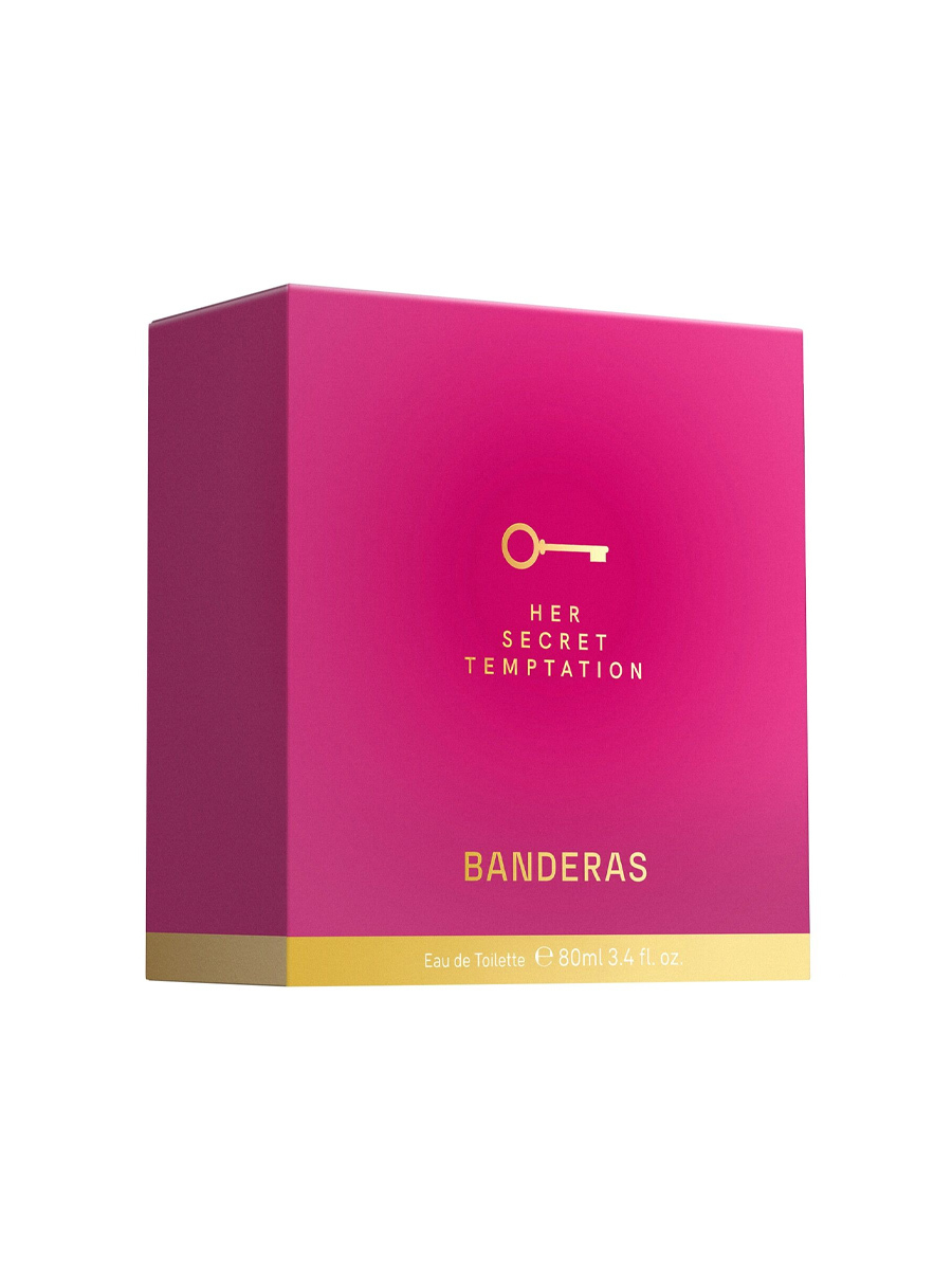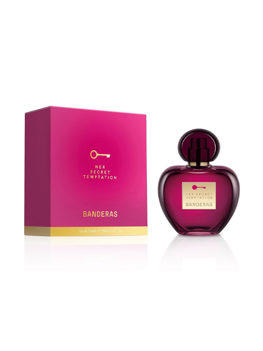 Antonio Banderas Her Secret Temptation — женская туалетная вода объемом 50 мл, созданная в 2017 году, представляет собой чувственный восточно-цветочный аромат, воплощающий чистое женское соблазнение во флаконе и призывающий поддаться самым сокровенным желаниям. Аромат заключен в изысканный флакон формы сердца с насыщенным фиолетовым оттенком, который символизирует страсть и соблазн, увенчанный элегантной золотой этикеткой с символом ключа — знаком раскрытия тайных желаний. Входит в легендарную коллекцию The Secret от Antonio Banderas.