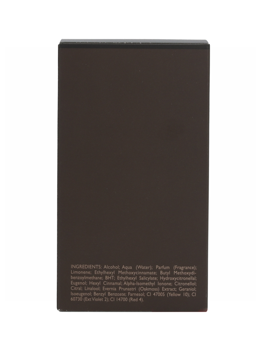 Alcohol, Aqua (Water), Parfum (Fragrance), Limonene, Ethylhexyl Methoxycinnamate, Butyl Methoxydibenzoylmethane, BHT, Ethylhexyl Salicylate, Hydroxycitronellal, Eugenol, Hexyl Cinnamal, Alpha-Isomethyl Ionone, Citronellol, Citral, Linalool, Evernia Prunastri (Oakmoss) Extract, Geraniol, Isoeugenol, Benzyl Benzoate, Farnesol, CI 47005 (Yellow 10), CI 60730 (Ext Violet 2), CI 14700 (Red 4).