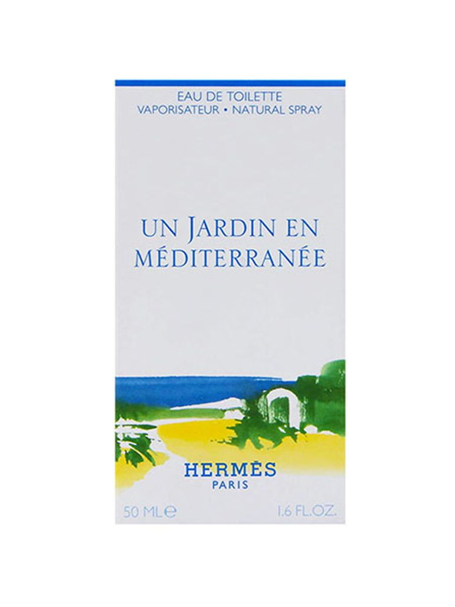 HERMES UN JARDIN En Mediterranee — туалетная вода для женщин объемом 50 мл (edt), созданная в 2003 году легендарным парфюмером Жан-Клодом Элленой и ставшая первой композицией в культовой коллекции Jardin. Аромат вдохновлен красотой и гармонией средиземноморских берегов, где порывистый морской ветер приносит долгожданную прохладу, а воздух наполнен притягательными запахами южных цветов и трав, словно прогулка по ароматным, чудесным садам Средиземноморья с тенями деревьев и солнечным теплом ласкового моря.