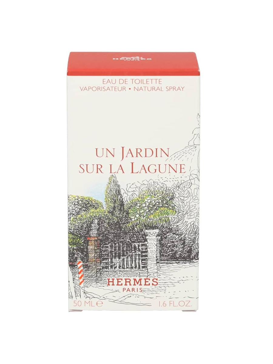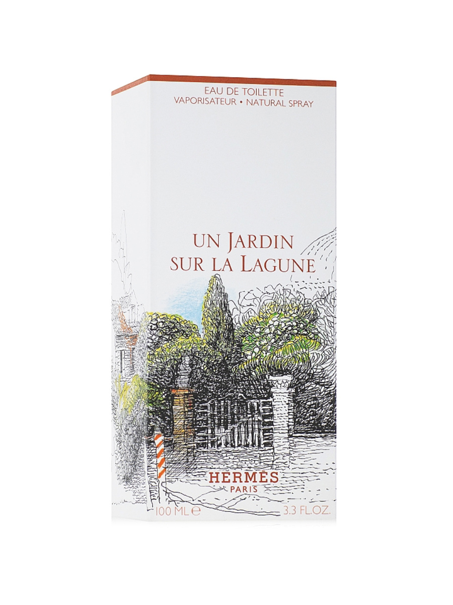 HERMES UN JARDIN Sur La Lagune — туалетная вода для мужчин и женщин объемом 50 мл (edt), созданная в 2019 году талантливым парфюмером дома Hermès Кристин Нагель и продолжившая легендарную коллекцию Jardin. Композиция представлена цветочно-древесной пирамидой водяной и восточной классификации. Аромат раскрывается томными сливочными нотами ванильно-лимонной магнолии в сочетании со сладковато-цитрусовым питтоспорумом, создающими нежную и бархатистую свежесть, переходит в проникновенное сердце с изяществом пряной белой лилии Мадонна, а завершается базой из благородных древесных нот в гармоничном сочетании с горьковато-солеными оттенками морского бриза, которые вносят аристократизм и прохладу.