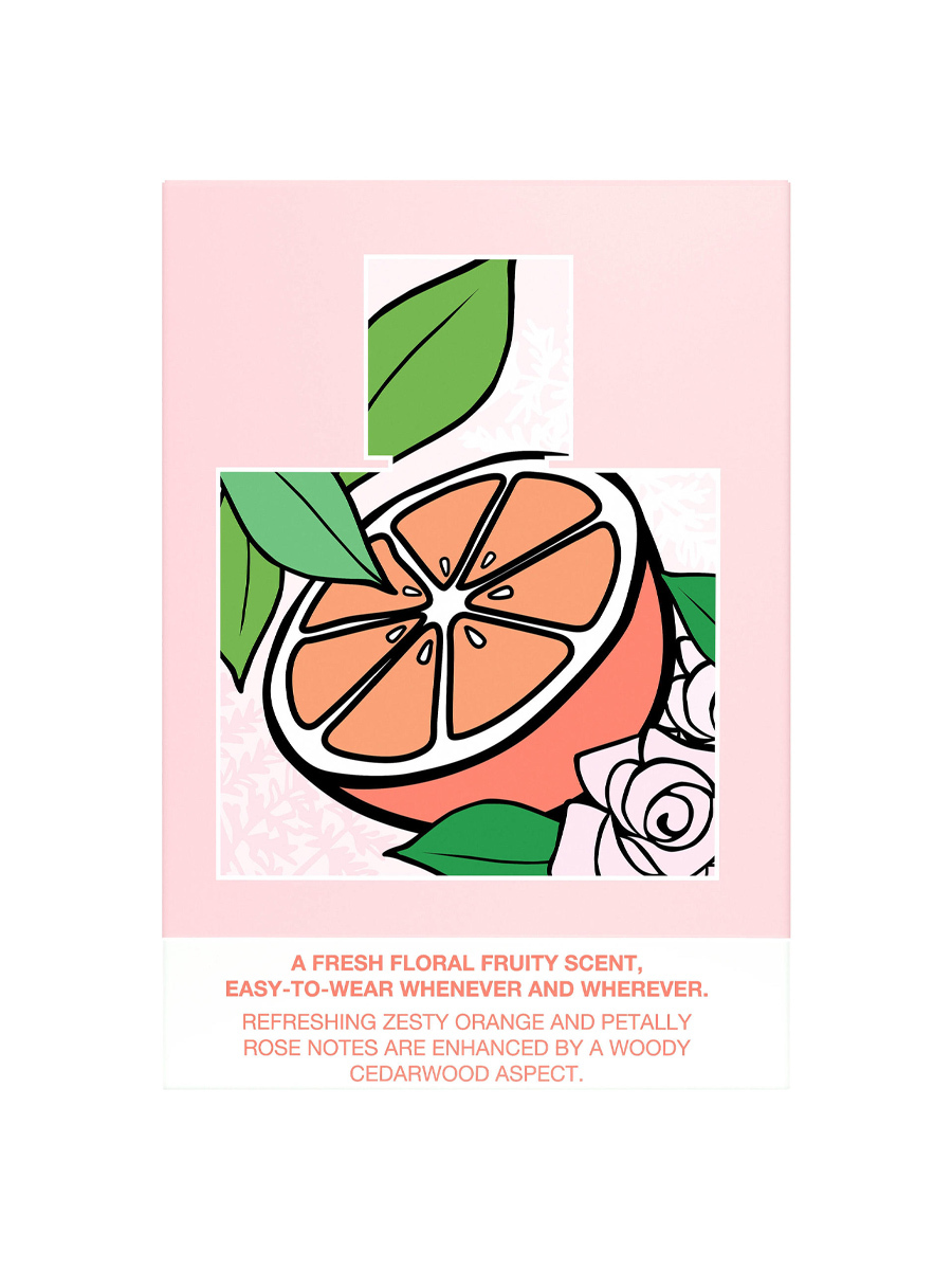 Композиция открывается верхними нотами сладковатого перезревшего мандарина, ароматные дольки которого перекликаются с медовыми акцентами сочной спелой груши и прохладно-зелеными нюансами свежих листьев. Эти ноты создают энергичное звучание, чарующую атмосферу свежести, жизнерадостности и бодрости, освежают и улучшают настроение с первых секунд. Сердце аромата раскрывается цветочно-фруктовыми нотами европейской сливы мирабель, яркого и неповторимого тона ревеня с его травянисто-терпкими переливами, сладостными жасминовыми обертонами и пудровыми нотками нежной фиалки.