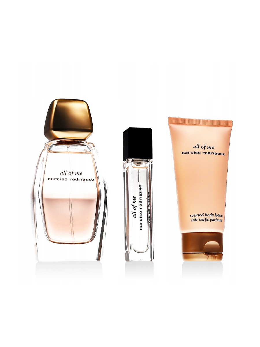 Narciso Rodriguez All Of Me — это современная и многогранная парфюмерная вода (Eau de Parfum), созданная для тех, кто хочет подчеркнуть свою индивидуальность. В этот эксклюзивный набор входят сразу три элемента для создания полноценного парфюмерного ритуала: полноразмерный флакон 90 мл, парфюмированный лосьон для тела 50 мл и дорожная миниатюра 10 мл. Аромат пахнет как роскошная «абстрактная роза»: свежесть магнолии на старте переходит в уникальный дуэт центифолии и бурбонской герани, а завершается все фирменным пудровым мускусом и сливочным сандалом, создавая эффект «второй кожи».