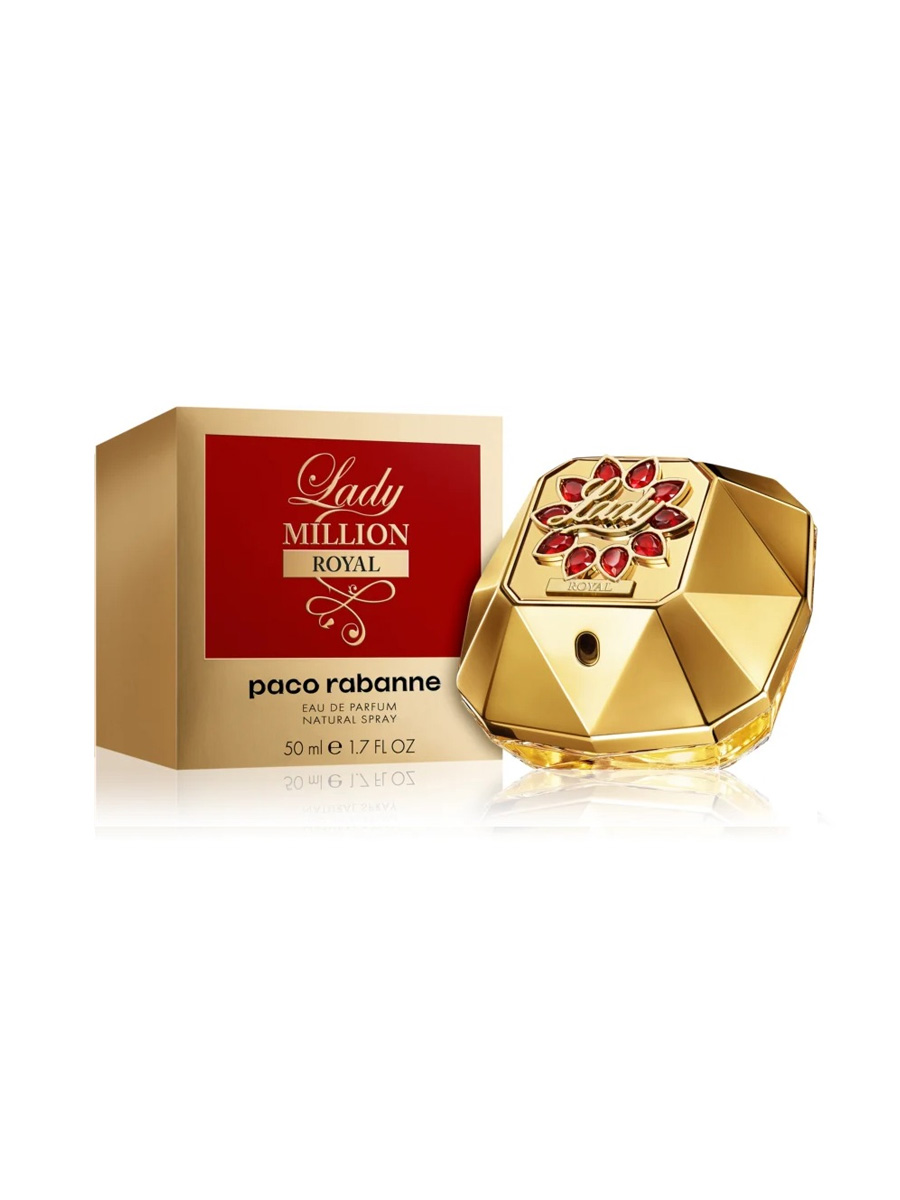 Paco Rabanne Lady Million Royal — это величественный и дерзкий аромат для женщин, выпущенный в 2023 году. Представленный в концентрации парфюмерная вода (Eau de Parfum), он стал воплощением абсолютной самодостаточности и королевского гламура. Объем 50 мл заключен в легендарный флакон-алмаз, который в версии Royal украшен королевским красным орнаментом и сверкающими деталями. Этот парфюм пахнет как роскошный вечерний прием: он сочетает в себе аппетитную фруктовую сочность, благородные цветы и глубокую древесную базу, создавая образ женщины, которая сама устанавливает правила.