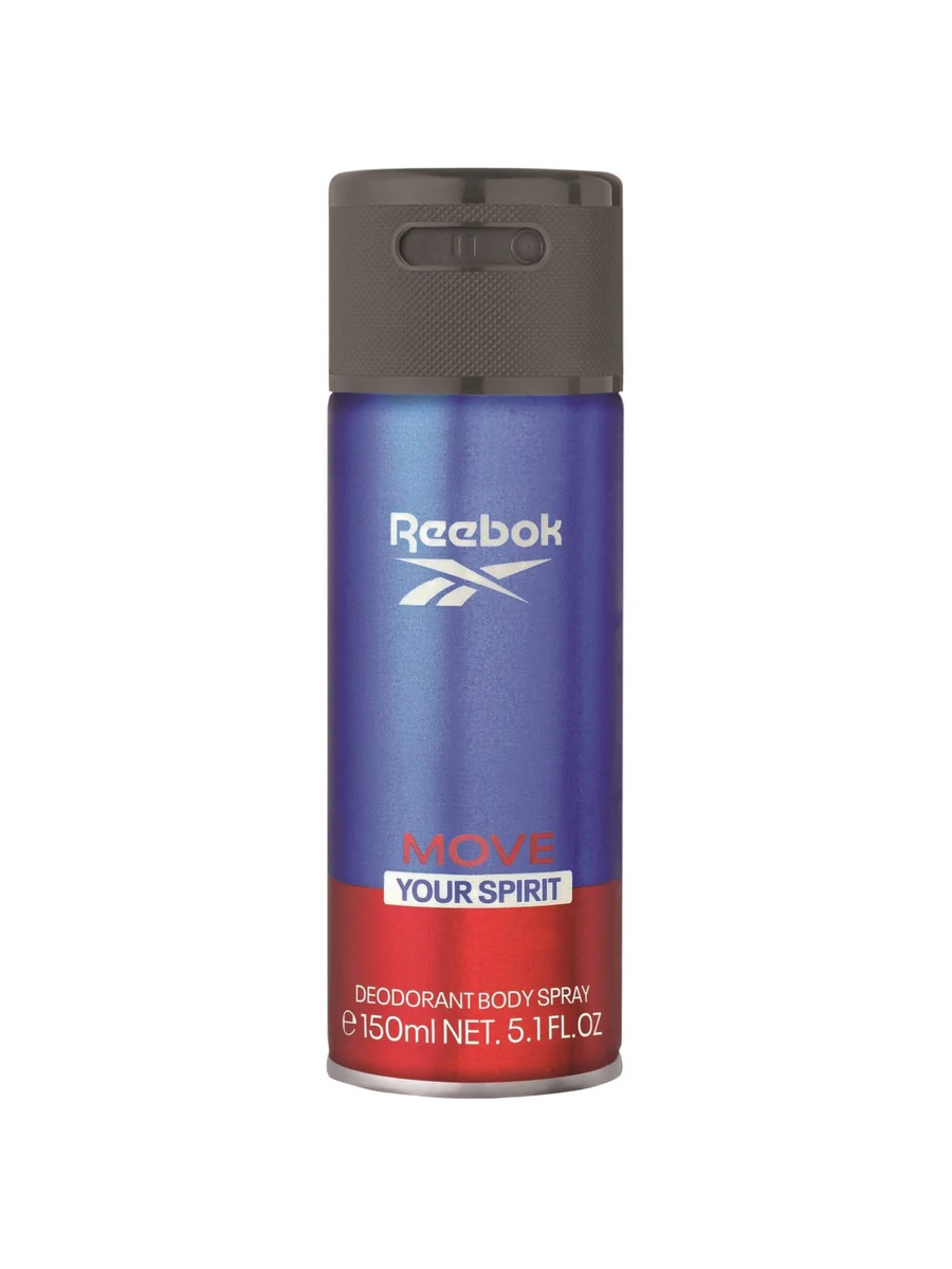 Выпущенный в 2022 году, мужской дезодорант Reebok Move Your Spirit в объеме 150 мл представляет собой мощное освежающее средство, вдохновленное энергией спорта. Продукт представлен в формате парфюмированного спрея, который сочетает в себе морскую свежесть, ароматические травы и глубокие древесные аккорды. Композиция открывается бодрящим коктейлем из морских нот, лаванды и ледяного бергамота, которые в сердце дополняются специфическими акцентами морской соли, шалфея и кипариса, а завершаются мужественным шлейфом из амбры, пачули и ели.